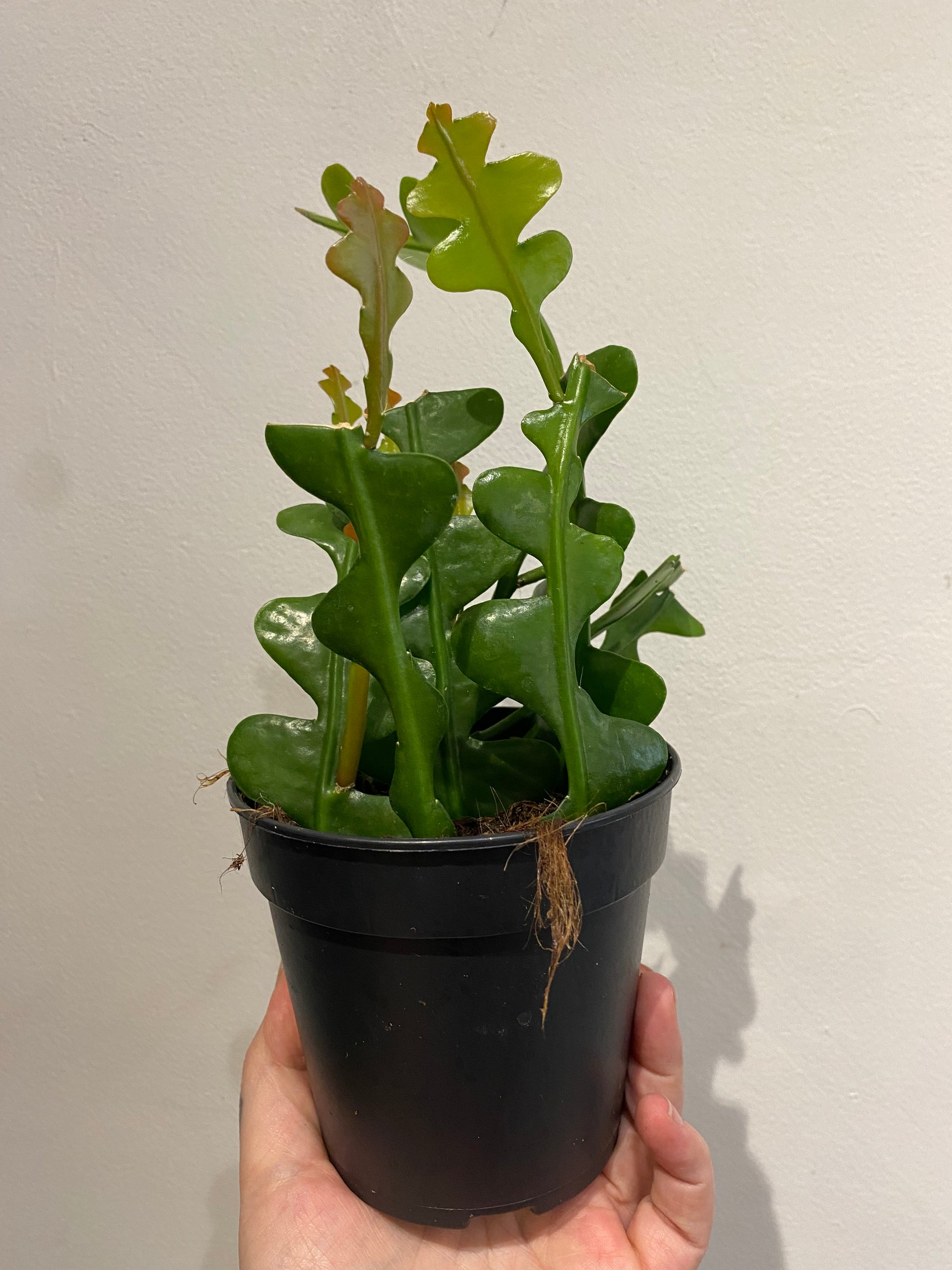 Whether you choose to call this plant an epiphyllum anguliger, it’s newer reclassified name of disocactus anguliger, ric-rac cactus, orchid cactus, fishbone cactus or a zig-zag plant, we can all agree this houseplant is pretty cheerful to have around! Native to Mexico, this epiphytic cactus has a distinctive zig-zag stem shape + an easy going growth habit, which makes it one of my favourite succulents in my collection. In terms of plant styling, it’s structural presence makes it a versatile choice for hanging in a planter, or adding personality to a plant shelf. When the plants are smaller, they can make great coffee table plants but as they mature, their growth will start to hang over the pot so is best with more room to spread out
